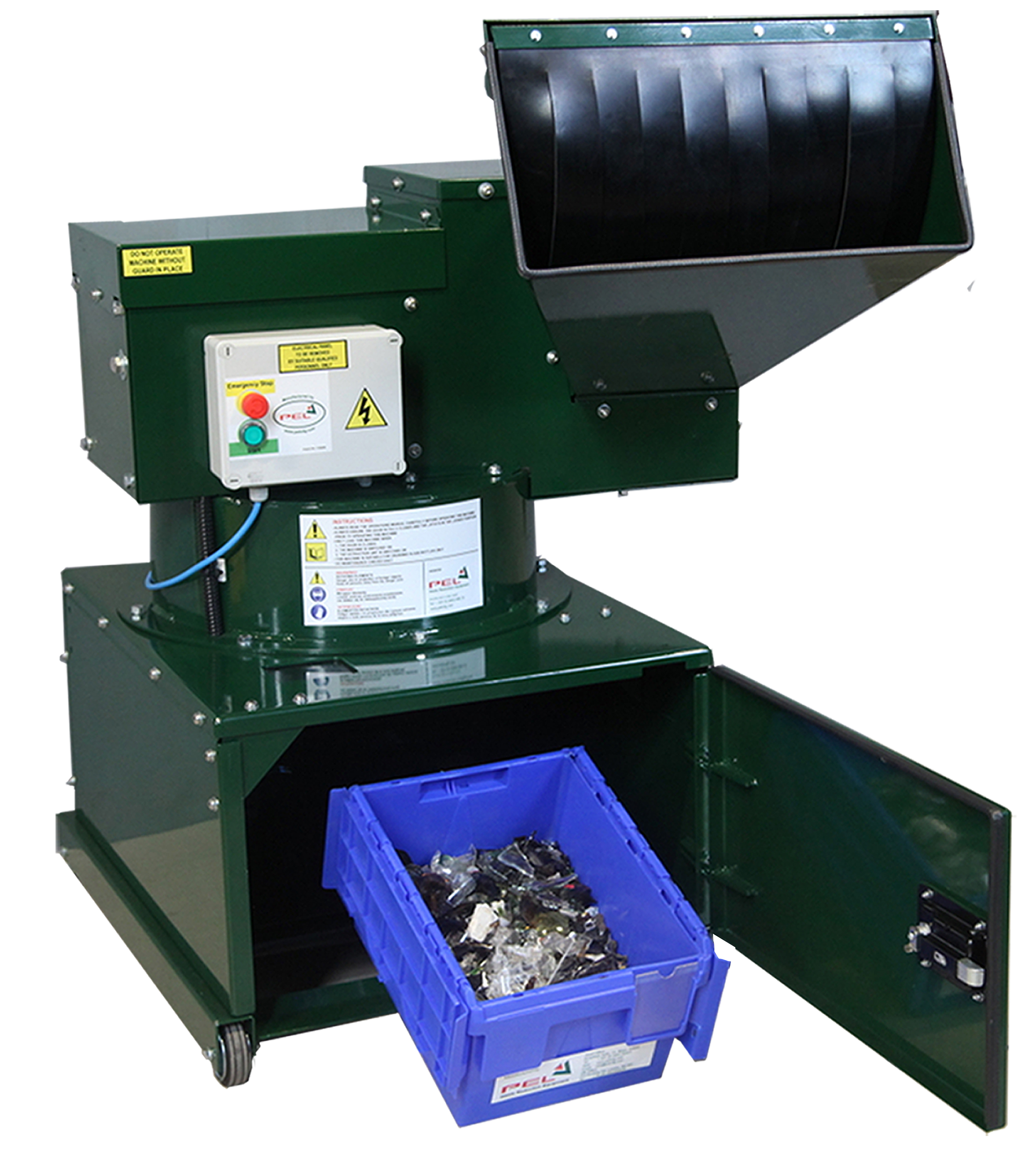 + Makes 8mm cullet which is accepted by recyclers