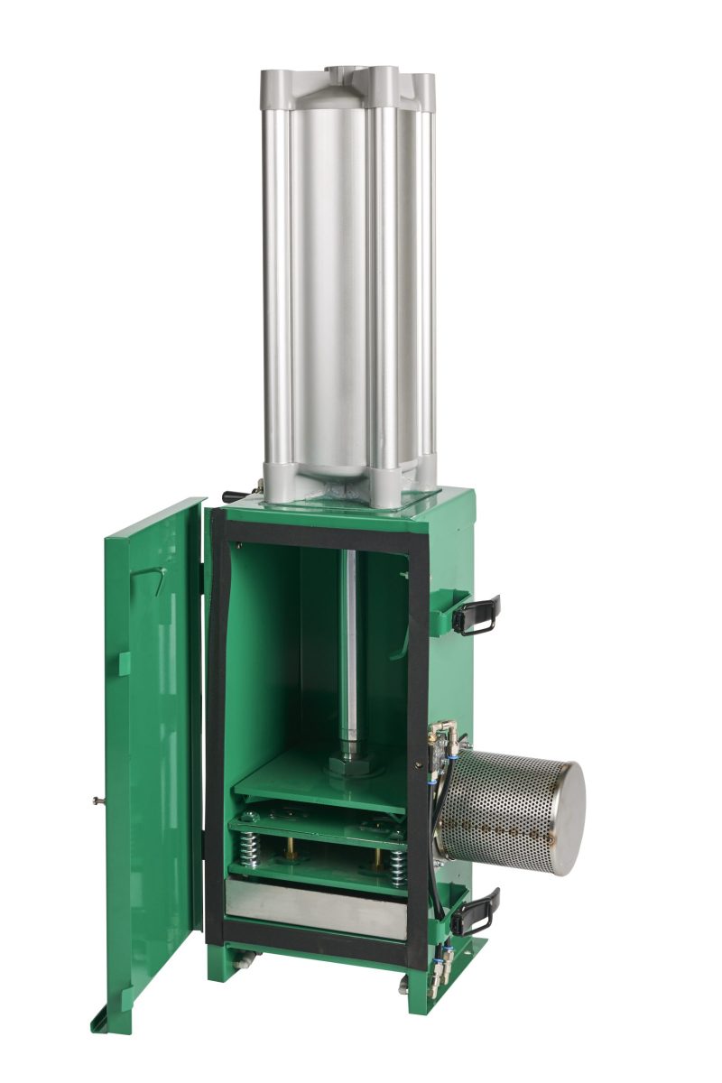 This machine requires an airline delivering at least 7 bar of pressure for a maximum press force of 1.2 tonnes